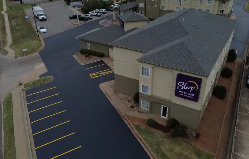 Sleep Inn Edmond is a comfortable, well-rated hotel located at 3608 S Broadway in Edmond, OK. The property serves travelers throughout the Oklahoma City metro and offers easy access to nearby shopping, dining, and major highways. With consistent guest traffic, maintaining a clean and clearly marked parking lot is an important part of the guest experience.